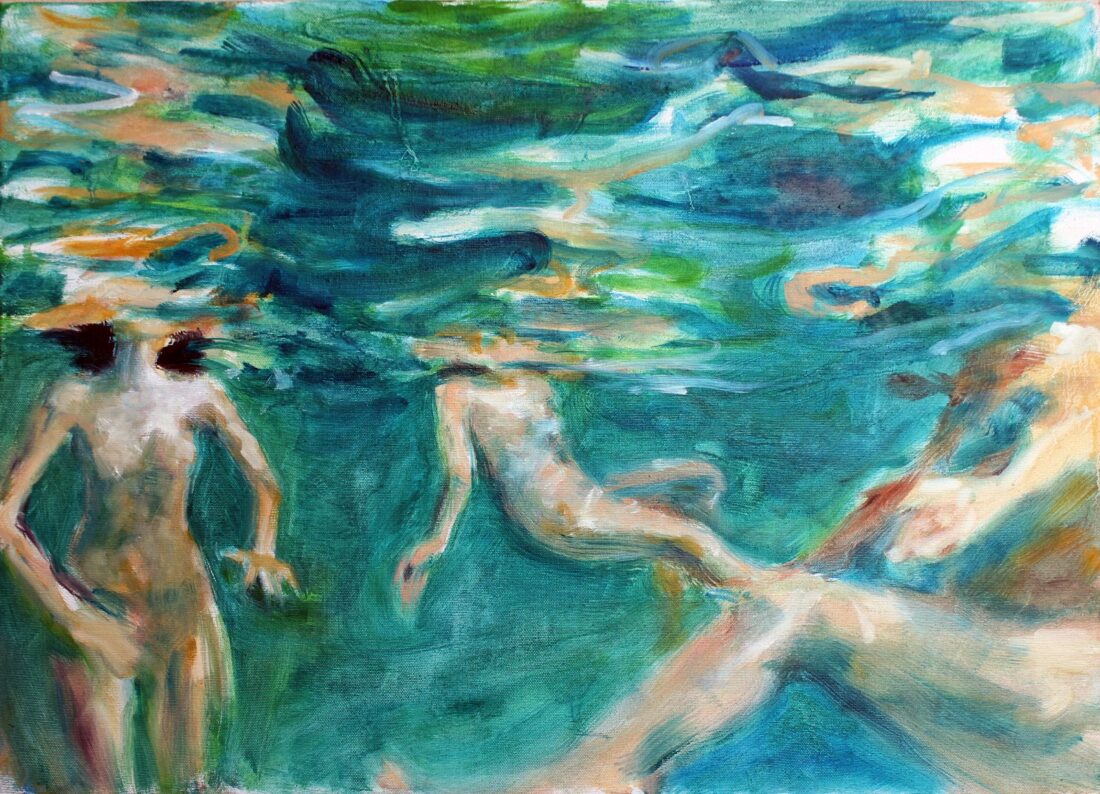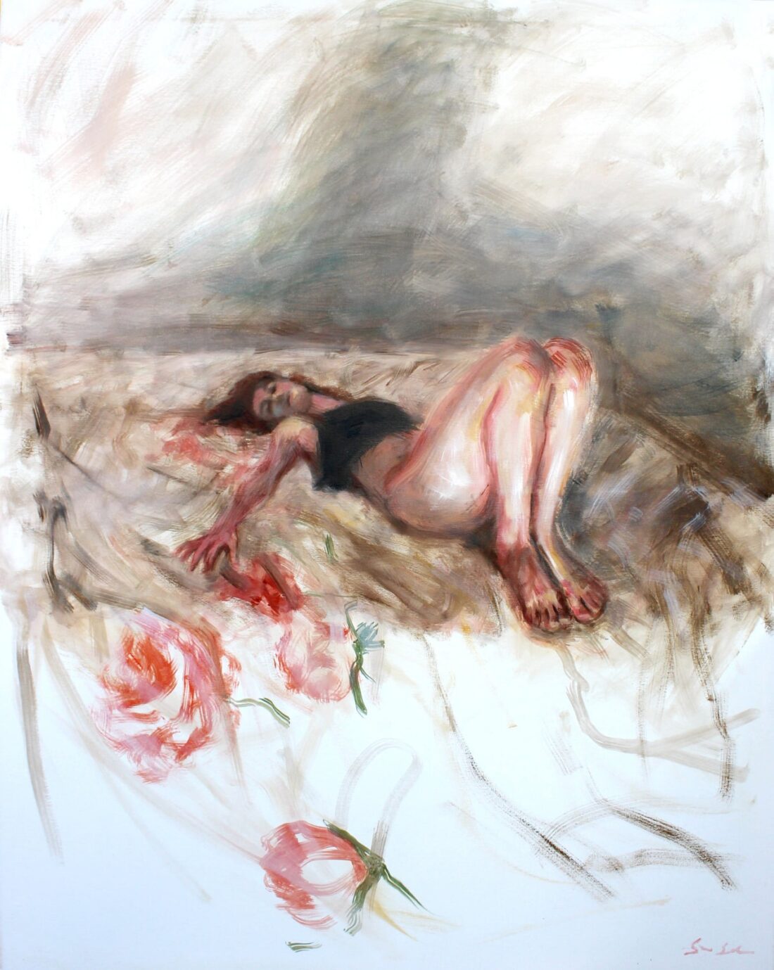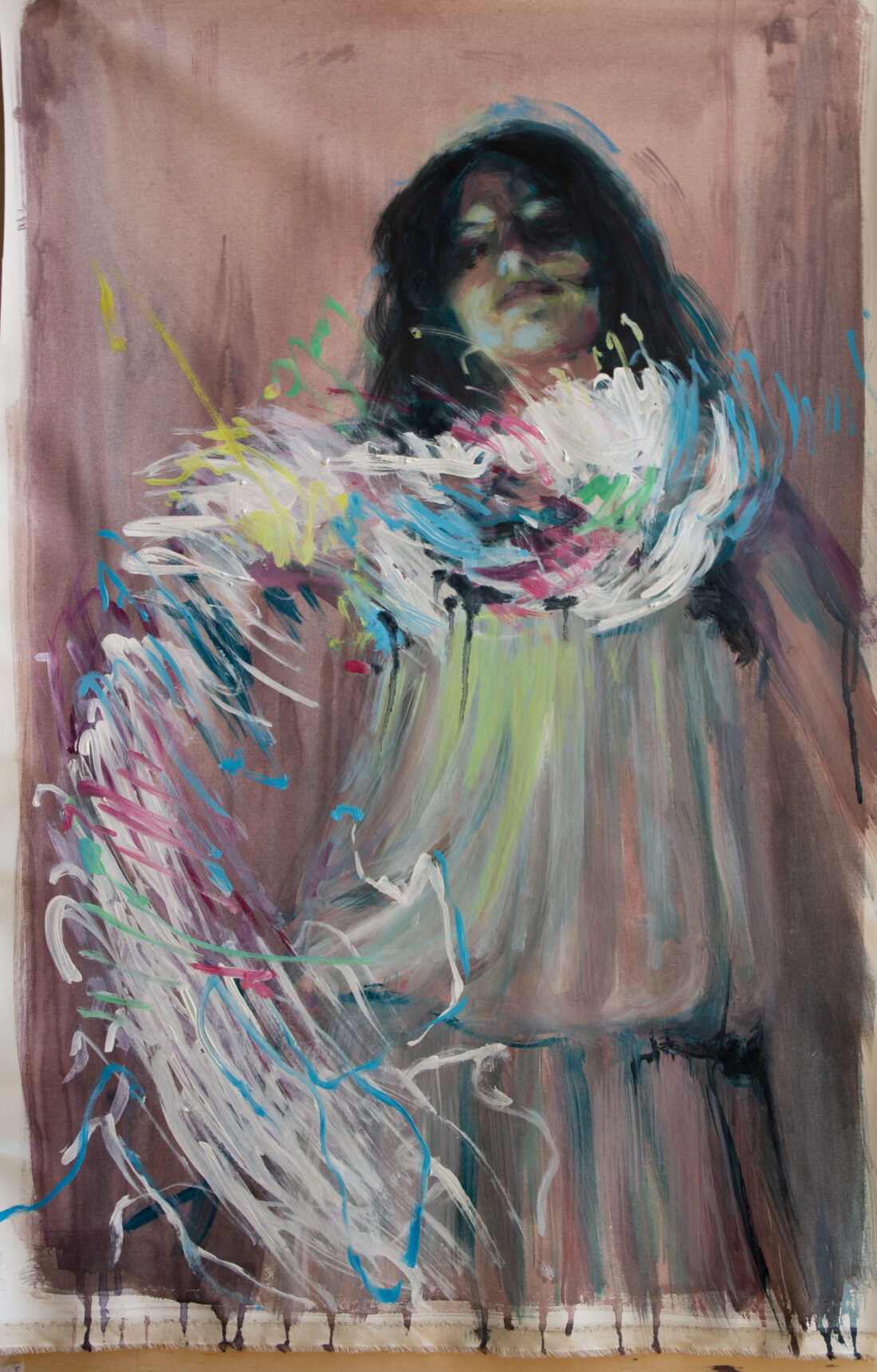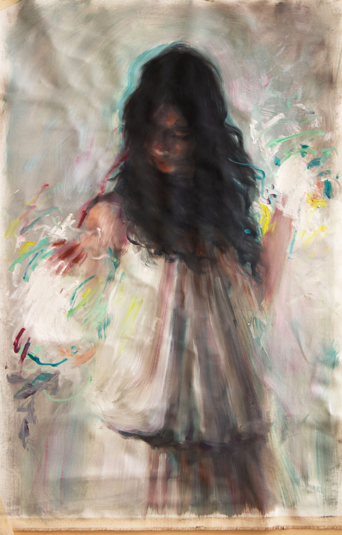 1 Gennaio 2024 In By GraziaArt “nel fiato del prato mi faccio pausa” acrilico e olio su tessuto di lino recuperato. 100x60 cm 2024 0